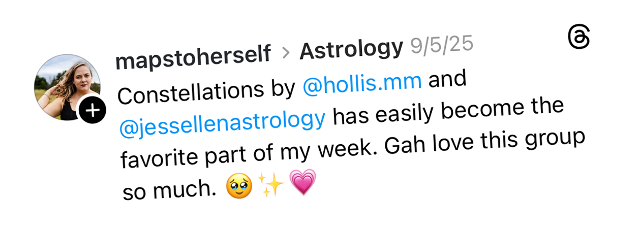 Constellations is your compass – a place to arrive, be held, and receive guidance through deep Scorpionic shifts – so instead of blindly cursing the stars during the daily energetic waves, you can integrate the self-transformation that’s calling to you in real time.